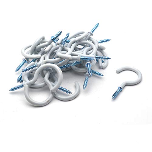 reddit Antrader 50 Pack Vinyl Coated Screw-in Ceiling Hooks Nickel Plated Metal Cup Hooks, 2-4/5 Inch, White